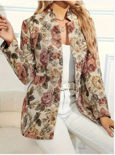 Celeste eleganter blazer mit taillengürtel & rosendetail