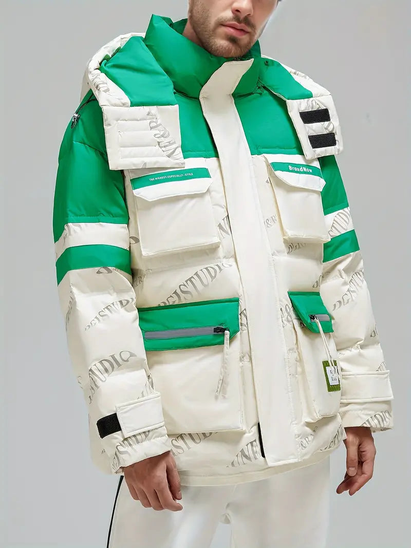 Wir stellen Ihnen Charles vor , die Colour-Block-Winterjacke für Herren, eine stilvolle und warme Ergänzung Ihrer Kaltwetter-Garderobe. Diese Jacke zeichnet sich durch ein modernes Color-Block-Design aus und kombiniert kräftige Farbtöne für einen modernen und auffälligen Look. Charles verbindet Mode nahtlos mit Funktionalität, die sowohl Stil als auch Schutz vor der Winterkälte bietet. Diese aus hochwertigen Materialien gefertigte Winterjacke bietet nicht nur ein trendiges Aussehen, sondern sorgt auch für Isolierung und Komfort. Werten Sie Ihren Winterstil mit Charles auf – die perfekte Wahl für Männer, die Wert auf Folgendes legen Mischung aus kühnem Design und Wärme.