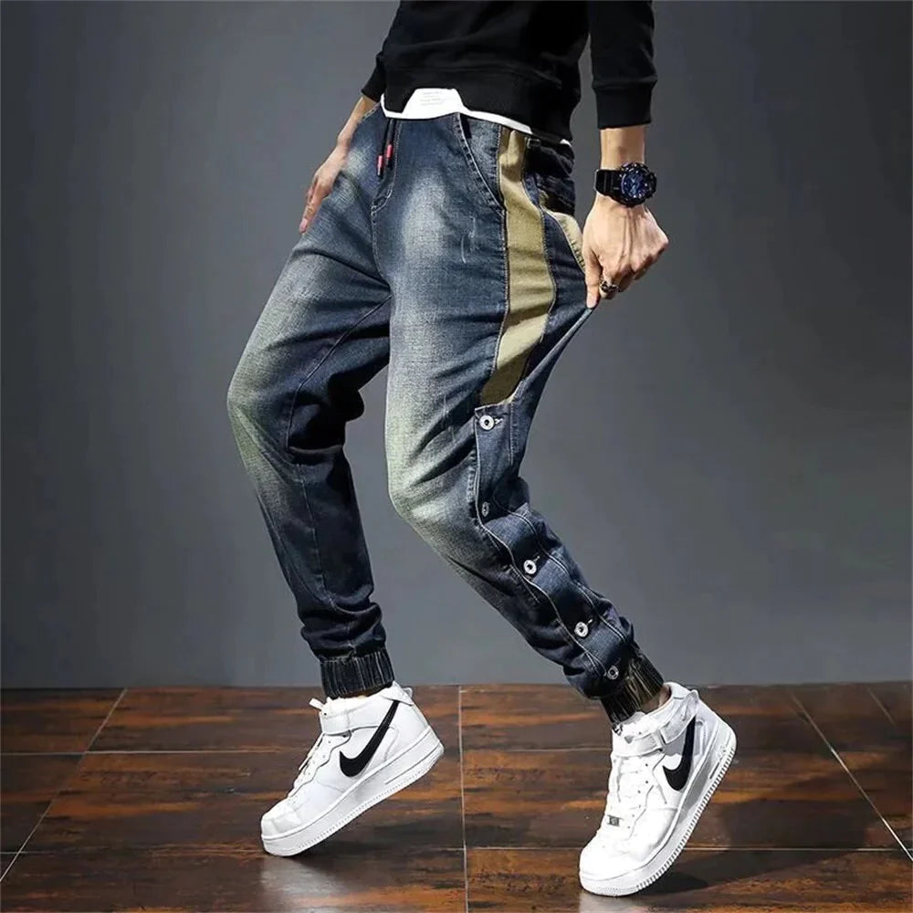 Wir stellen Ihnen Edward vor, den Inbegriff von Streetwear-Chic in Denim. Diese Streetwear-Jeans für Herren ist eine perfekte Mischung aus Stil und Komfort und verleiht Ihrer Freizeitgarderobe eine moderne Note. Das mit Präzision gefertigte Edward verfügt über eine moderne Passform und einen Hauch von Stretch für Flexibilität, sodass Sie mühelos im Trend bleiben und gleichzeitig den ganzen Tag über Komfort bieten. Egal, ob Sie auf der Straße unterwegs sind oder mit Freunden entspannen, diese Streetwear-Jeans überzeugt mit Vielseitigkeit und urbanem Flair. Werten Sie Ihren lässigen Look mit Edward auf, einer unverzichtbaren Ergänzung für die Garderobe jedes modebewussten Mannes.