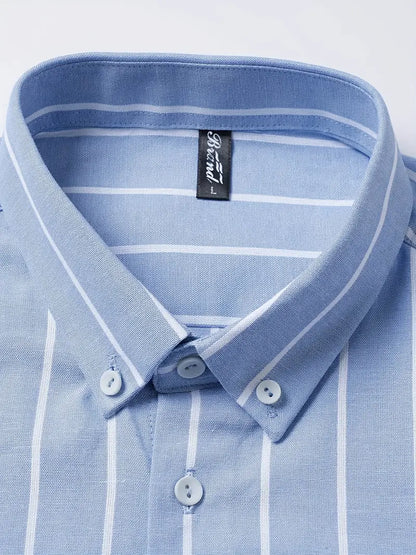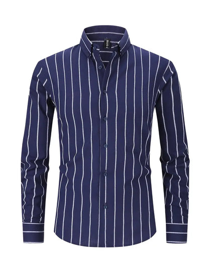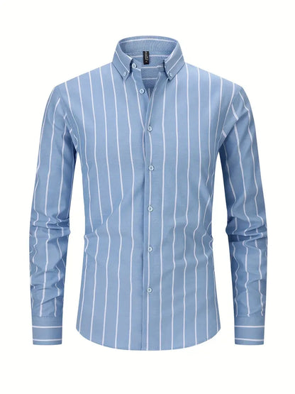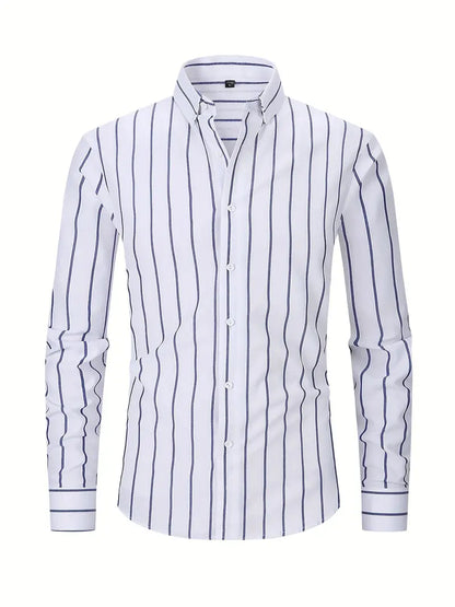 Wir präsentieren Emilio , das lässige Streifen-Langarmhemd für Herren, eine stilvolle Mischung aus lässigem Komfort und zeitlosem Charme.