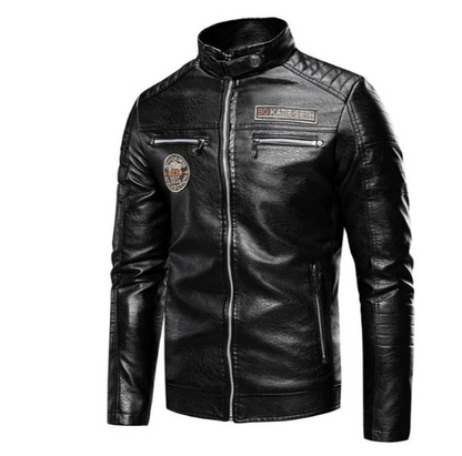 "Joach – Stylische Herren Lederjacke mit auffälligen Patches, die dem klassischen Design eine moderne Note verleihen. Perfekt für einen lässigen und selbstbewussten Look."