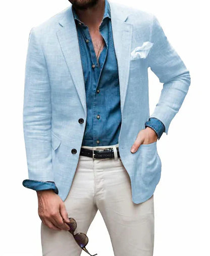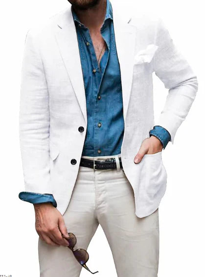 Jon - herren leinen blazer strand hochzeit casual tailored fit solide farbe einreihig zwei knöpfe