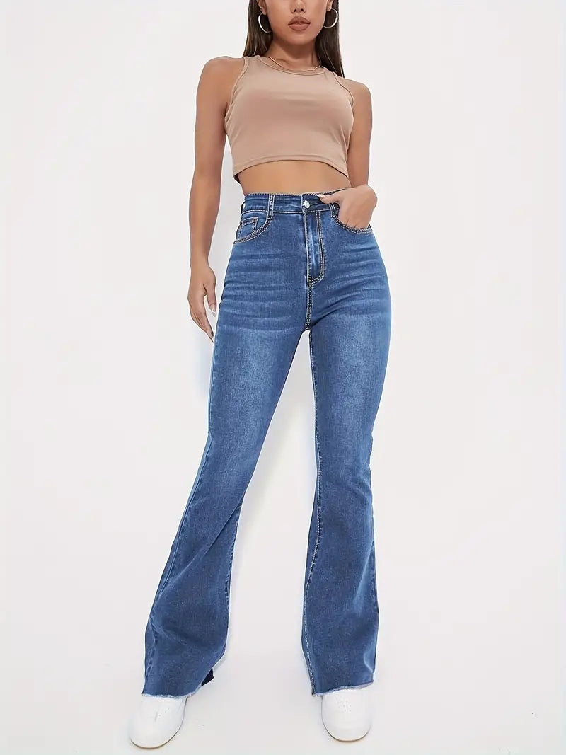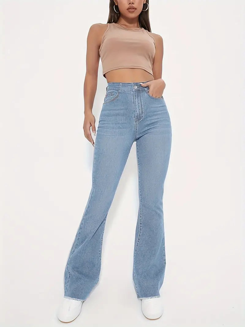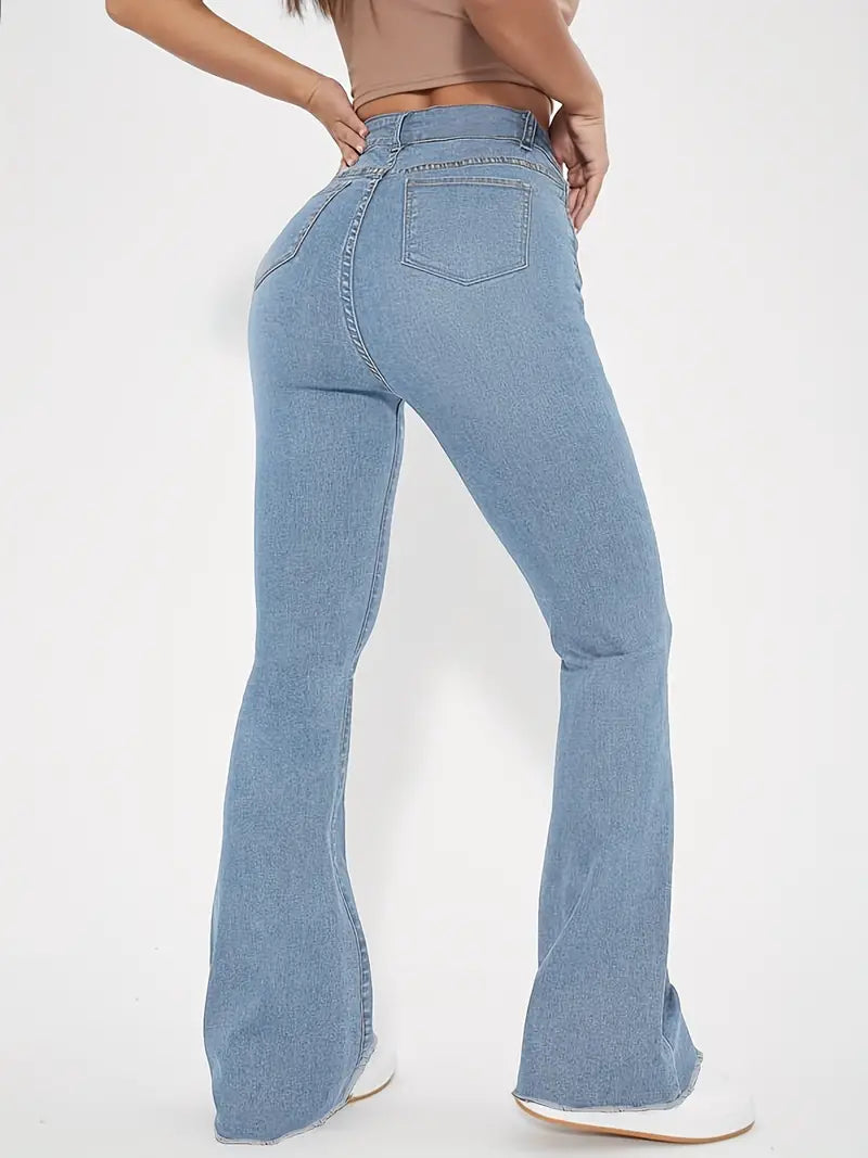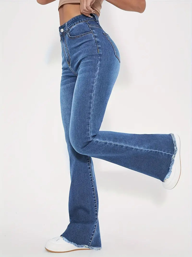 Katherine – stilvolle schlagjeans mit rohem saum