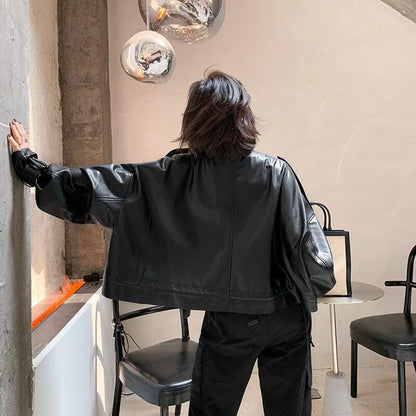 Kulta – Damen-Lederjacke mit Box-Cut, bietet einen modernen und lässigen Look. Perfekt für einen trendigen, urbanen Style mit Komfort.