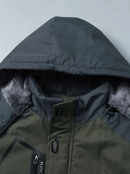 Das dick gefütterte Innenfutter sorgt für eine optimale Wärmeisolierung, während das wasserdichte Außenmaterial sicherstellt, dass Sie auch bei widrigen Witterungsbedingungen trocken bleiben. Die durchgehende Reißverschlussfront und der hochgeschlossene Kragen bieten zusätzlichen Schutz vor Wind und Kälte. Mit mehreren Taschen, darunter Seitentaschen und Brusttaschen, bietet diese Winterjacke ausreichend Stauraum für Ihre persönlichen Gegenstände.