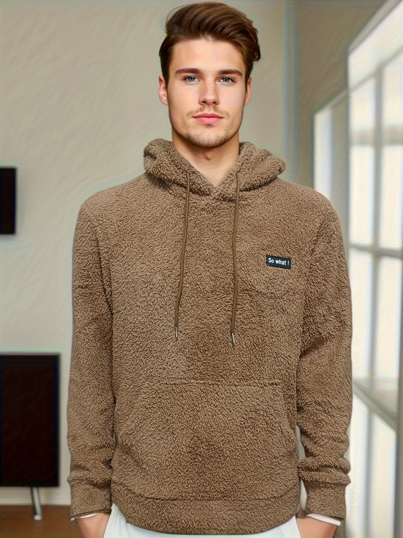 Lernen Sie Matthew kennen, die Verkörperung von Wärme und Komfort in unserem Flauschiger Kapuzenpullover für Männer. Dieser kuschelige und plüschige Kapuzenpullover ist die perfekte Wahl für kühle Tage und bietet die perfekte Mischung aus Stil und Gemütlichkeit.