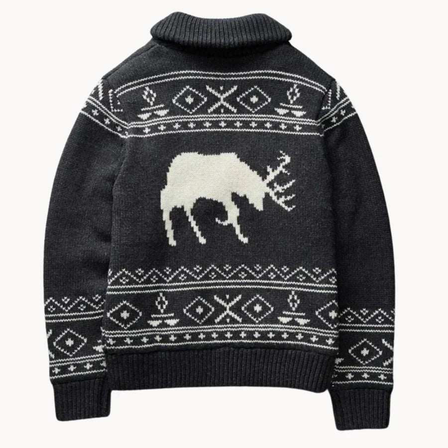 Die Herren-Pulloverjacke Mountridge strahlt mit ihrem einzigartigen Patchwork-Design und Rentiermotiv Gemütlichkeit aus. Perfekt für kalte Tage, vereint es Wärme und Stil und ist somit ideal für lässige und festliche Anlässe.