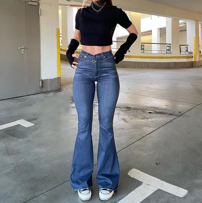 Nympha - damenhose aus jeansstoff mit hoher taille