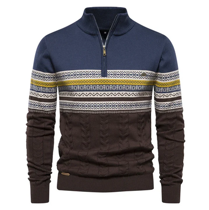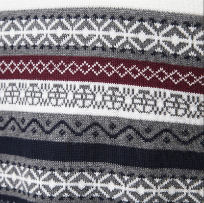 Der Ruzeva-Pullover kombiniert ein Retro-Muster mit hochwertigen Materialien. Dieser stylische Pullover bietet hervorragenden Tragekomfort und ist perfekt für einen modischen, einzigartigen Look.