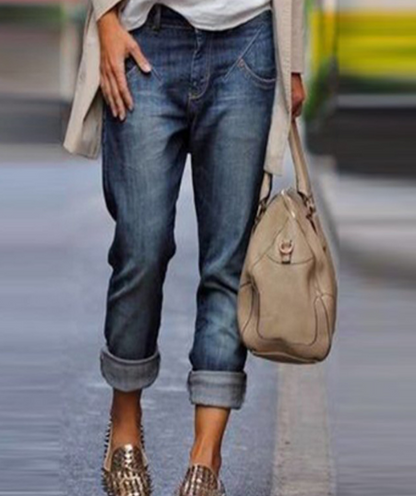 Der lockere Schnitt mit leicht gekrempelten Hosenbeinen sorgt für einen entspannten Look. Gleichzeitig verleiht die klare Linienführung der Hose eine zeitgemäße Eleganz, die sich in vielen Outfits wiederfindet.
